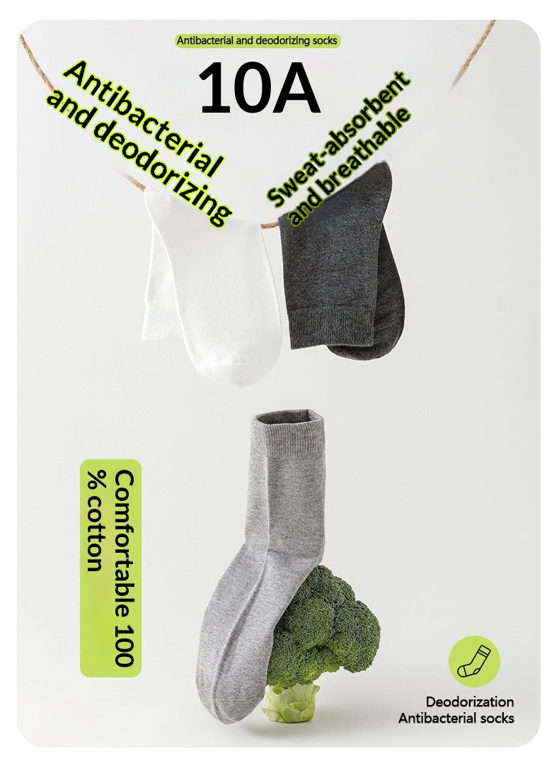 Pure Cotton Casual Antibacterial Deodorizing Mid-calf Socks